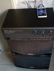 KTV功放音箱,板板正正一套KTV音响,原装无修,正常使用,功放内置风扇散热,内部新的一样,箱子8寸低音,动态性能很好,自己用不到了,也没有用多长时间哈,其实和全新的差不多,我们也没有经常眼红、低价给,音质、外观都是没话说的、想要的可以来咨询哈,都不包邮费,
